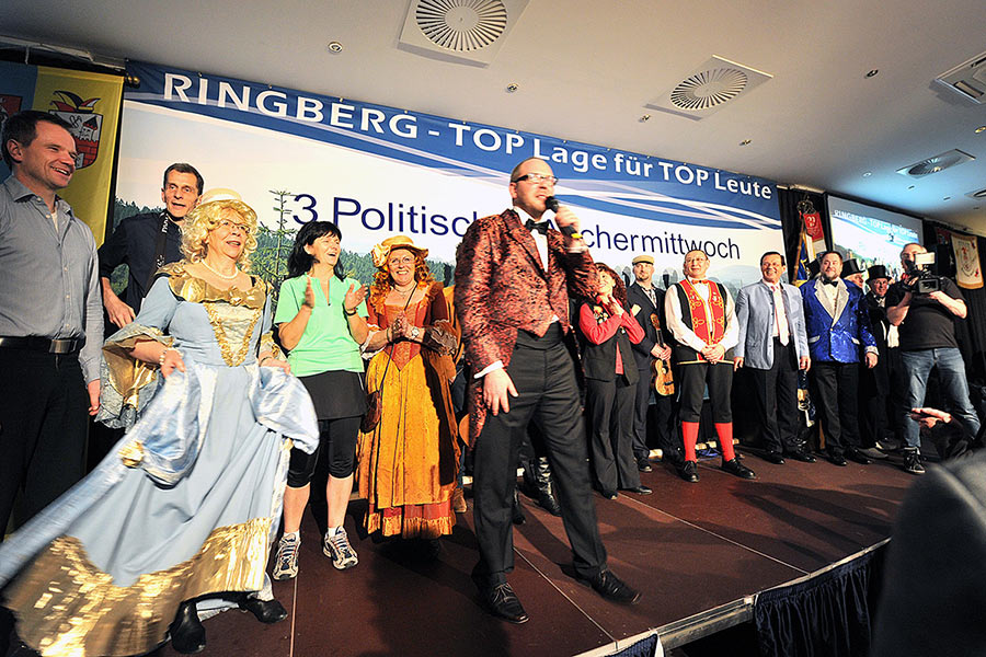 Politischer Aschermittwoch auf dem Ringberg bedeutete dieses Jahr Auftritt von nur zwei Suhler Stadtratsfraktionen mit nur vier politischen Vertretern und davon drei mal Freie Wähler! Martin Oeltermann, Ingrid Ehrhardt und Karin Rennert, Karin Müller war die SPD-Frau mit Humor. Doch nicht nur beim politischen Draufhauen bewiesen die Freien Wähler Überlegenheit. Nein, auch bei den anwesenden Anhängern punkteten wir. 37 Plätze belegte unser Team von dem mit insgesamt 500 Plätzen restlos ausverkauften Saal. Der Politische Aschermittwoch, bereits zum dritten Mal vom Ringberg Hotel in Szene gesetzt, ist inzwischen eine Kultnummer. Heuer ansonsten noch dabei: Suhls Oberbürgermeister Dr. Triebel als Perlentaucher, SPD-Landrat Heimrich vom Nachbarkreis, Schleusingens Bürgermeister Brodführer, der galant den Rasselbock entgegennahm, die Besten der Suhler Karnevalsvereine, Comedians, Musikanten und Super-Moderator Daniel Ebert, gebürtiger Suhler!