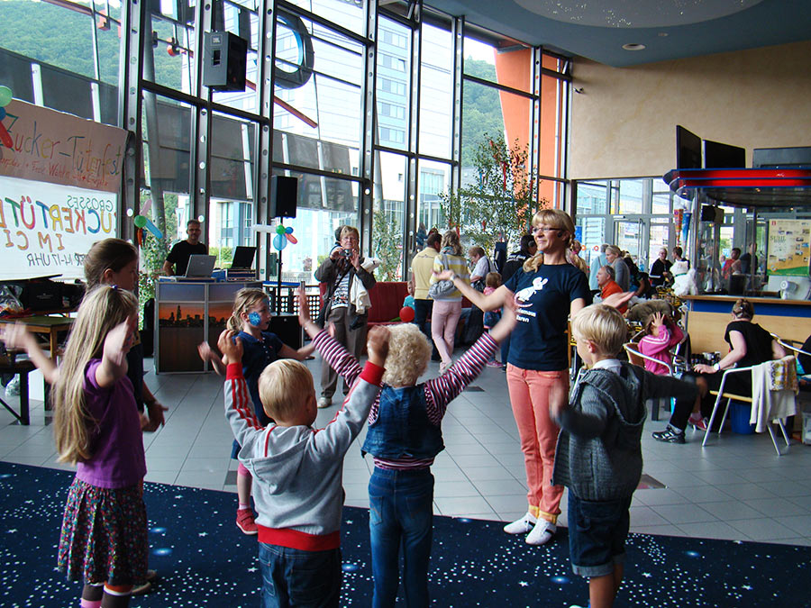 Im Mittelpunkt stehen Musik, Bewegung und Spiele. Dafür sorgen das Unterhaltungsduo M & M mit DJ Matthias und Spielemaus Maren. Natürlich wird auch die Tradition fortgesetzt, dass ABC-Schützen, die ihre geleerte Zuckertüte mitbringen, eine nützliche Nachfüllung erhalten. Überraschungen und Spaß gibt es aber auch für alle, die ohne bunte Tüte kommen. Kinderschminken ist angesagt, Basteln und Malen. Als Belohnung wird Popcorn ausgereicht. Am Plüti-Stand kann sich jeder, der möchte gegen ein Entgelt wieder sein eigenes Plüschtier stopfen. Das bekommt dann sogar eine Geburtsurkunde. Mit einem kuschligen Preis kann auch der Besucher rechnen, der die älteste Zuckertüte mitbringt. Gekürt wird diese um 16.30 Uhr. Natürlich gibt es auch Kaffee und selbstgebackenen Kuchen. Den Verkaufserlös erhält diesmal die Abenteuerschule Suhl.