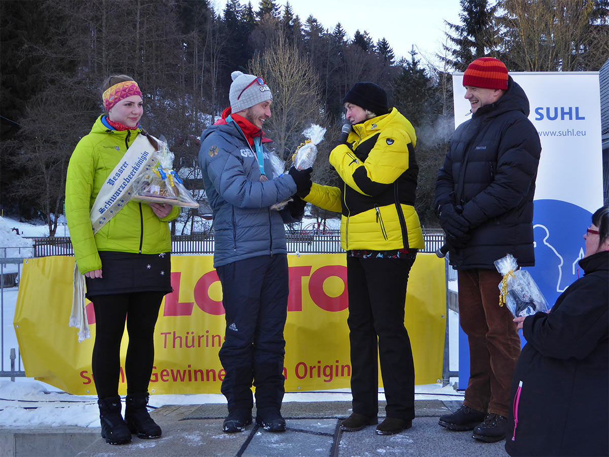 Sie sind Suhler, die Rodler Sascha Benecken und Toni Eggert. Aus Südkorea sind sie mit olympischem Bronze zurückgekehrt. Guter Grund sie nach ihrer Rückkehr in der Heimatstadt Suhl, im idyllischen Ortsteil Vesser zu empfangen und zu feiern. Toni Eggert war leider aus gesundheitlichen Gründen verhindert. Trotz bissiger Kälte beantworteten deshalb Sascha Benecken, der Techniker und auch der Trainer auf der Bühne alle Fragen, die "Reporter" OB Dr. Triebel stellvertretend für die vielen versammelten Fans stellte. Großes Lob an die Vesserer, die ein Fest ausgerichtet hatten, dass mindestens drei Sterne verdient. Auf einem Schneeberg loderte das olympische Feuer. Die Musi spielte, Zelte waren aufgebaut, heiße Getränke wurden serviert, leckerer Kuchen angeboten, Bratwürste auf dem Rost gebrutzelt und im Dorfbackofen Flammkuchen gebacken. Die schöne Schwarzebeerskönig überreichte Geschenke. Vesser hatte mal wieder weder Mühe noch Aufwand gescheut und sich richtig mit Herz ins Zeug geschmissen. Da trug sich doch Bronzemedaillengewinner Sascha Benecken gern ins Gästebuch ein.