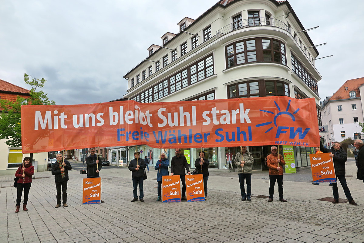 Freie Wähler Suhl mit Banner auf dem Marktplatz (Foto: Brigitte Günkel)