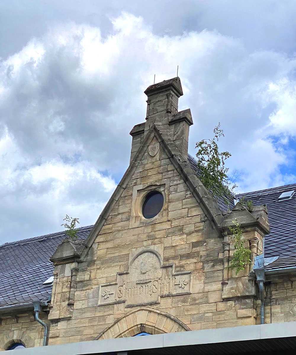 Auf ein ganz anderes Problem weist die Suhler Bürgerinitiative zur Rettung des Portalgebäudes hin. Der wird das historische Haus inzwischen viel zu grün. Deshalb schreibt Klaus Meier (Leserzuschrift "Freies Wort" 13.07.2020):