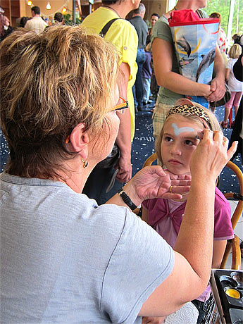 Mindestens genauso anziehend war für viele Mädchen und Jungen das Kinderschminken. Die Damen vom Freizeittreff Jugendschmiede hatten Bücher dabei, aus denen sich die Kids ihre Wunschgestaltung aussuchen durften. Dicht umlagert auch in diesem Jahr der Sonneberger plüti-Stand zum selbst stopfen von Plüschtieren. Die Erdmännchen, Eisbären, Katzen, Hunde und und und, ausgestattet mit einer Geburtsurkunde, werden nun die Schulanfänger begleiten.